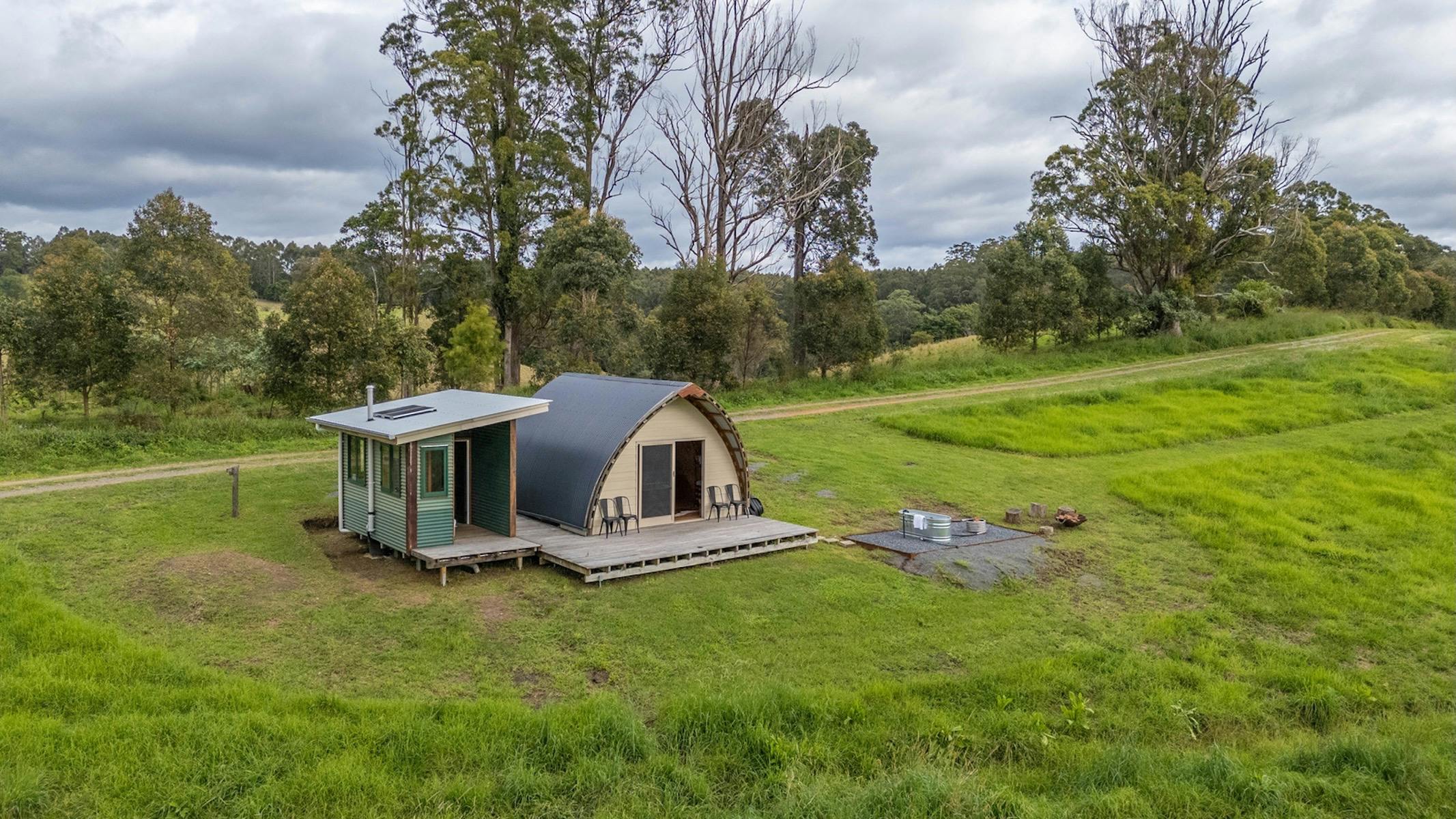 Perched high on the hill overlooking the farm, we have 2 off-grid farm huts, this one is called Bickell's Hut. Furnished for up to 4 people, with breathtaking views over our farm and beyond to The Promised Land, and a deck out the front to take in the view. Light a fire, watch the stars and switch off, reconnect with yourself and with nature. There is no mains power connected to the Huts. - a chance to fully immerse yourself in the tranquility of your surroundings